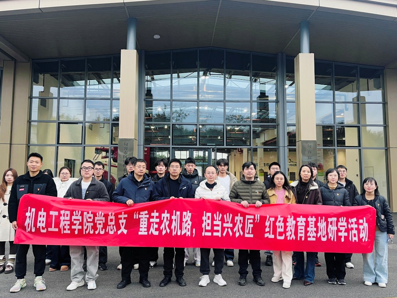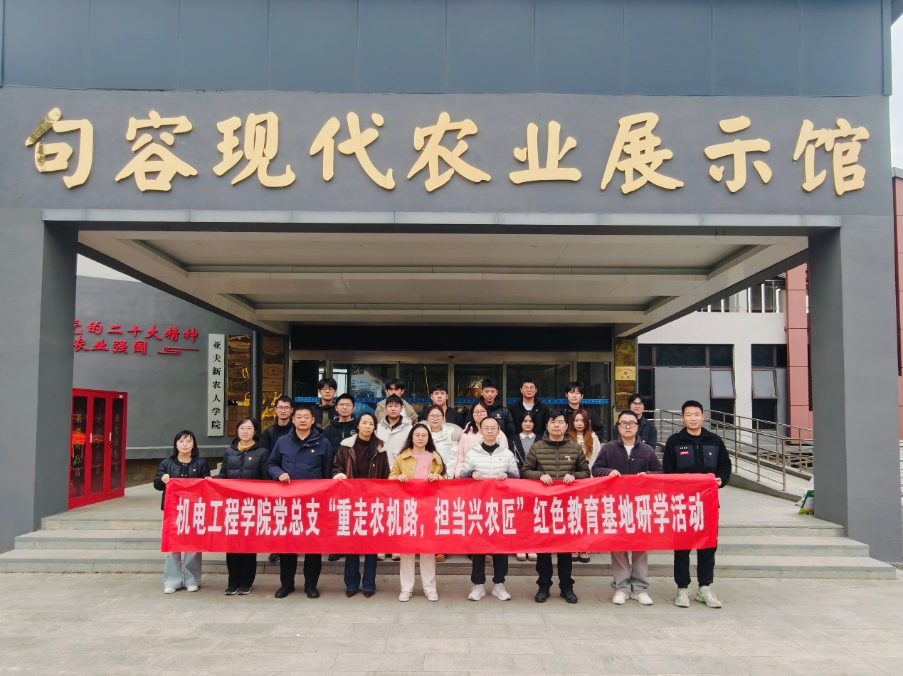 为深入学习贯彻习近平新时代中国特色社会主义思想,巩固拓展“亚夫精神”学习教育成果,推动党建与事业发展深度融合,2025年12月10日,机电工程学院党总支组织党员教师前往句容现代农业展示馆(赵亚夫事迹馆)及句容丘陵山地农机装备研究院,开展“重走农机路,担当兴农匠”主题研学活动。活动通过实境教学、技术观摩与专题研讨,引导党员教师感悟初心使命,汲取奋进力量,强化服务农业现代化的责任担当。