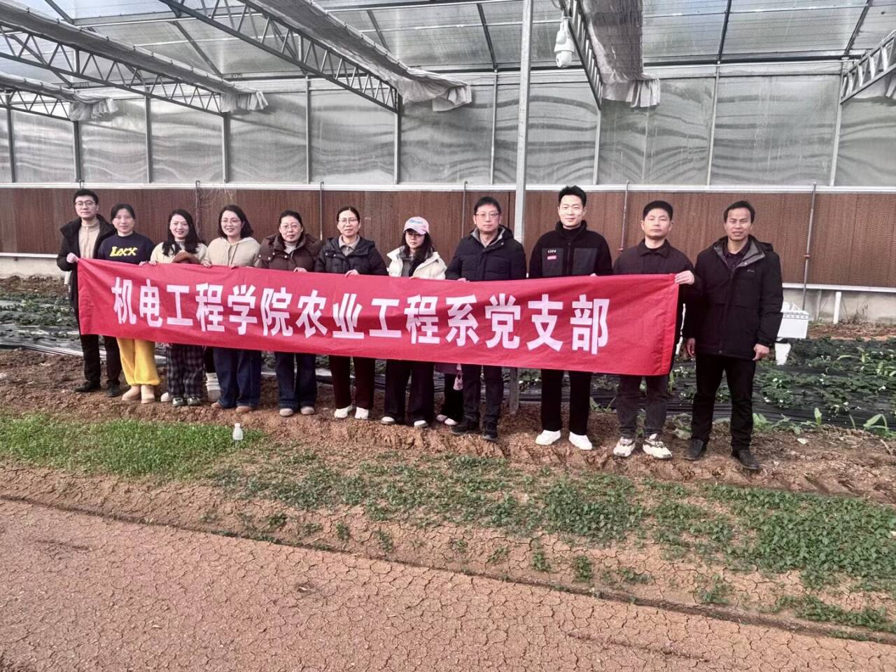 2026年2月4日,农业工程系党支部组织全体党员教师,在学院农博园草莓基地开展“农林田间日”主题党日活动,现场观摩校企联合研发新装备。